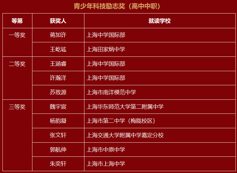 【赛复活动】第二十三届上海市青少年“明日科技之星”竞赛活动结果公布