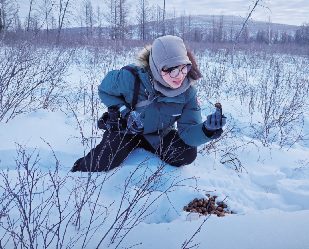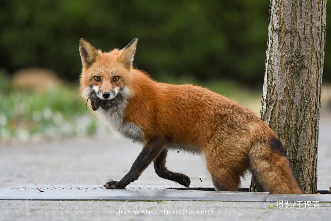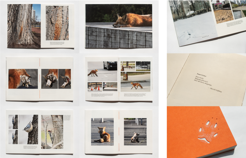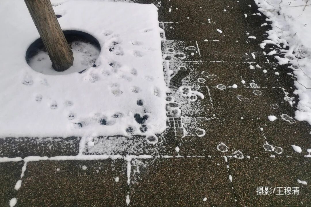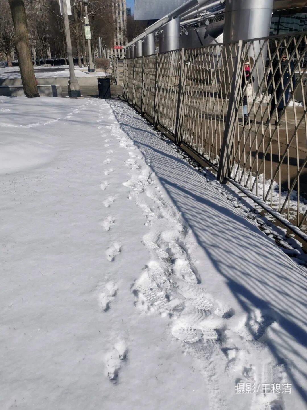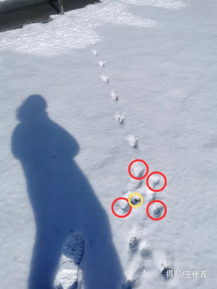 写在前面: 野生动物在与人类相遇时,常常出于本能选择躲避,但是它们悄悄“作案”的动作,往往在大地上留下痕迹。一些痕迹爱好者会从这些痕迹中进行解读与推理,窥见隐藏其后的生命细节。毕业于芝加哥艺术学院“艺术与环境”方向的王穆清老师正是一位专业的痕迹观察者,她为山水的伙伴分享了动物痕迹的起源、在科研和保护中的作用、常见动物痕迹辨识等内容,其中特别介绍了在芝加哥观察赤狐一家的故事,在此分享给读者,与大家共同精进野外动物痕迹观察技能。 在正式开始分享芝加哥的故事之前,先来说一说什么是动物痕迹,简单来说,只要不是动物本体直接出现,而是它留下来的存在证明,我们都可以叫它动物痕迹。比如足印、粪便、分泌物、食丸、毛发、蜕、骨骼、巢穴、卧迹、抓痕,还有猎物的残骸等等……其实范围挺广的。甚至像动物的叫声,也可以算作一种动物痕迹。 有些痕迹是动物有意留下的,目的是想通过视觉或气味传递信息。有时是为了宣示领地,有时则是繁殖信号,告诉同种的其他个体:“我现在进入繁殖期了,你可以来找我哦。”但也有很多痕迹是动物们无意间留下的。比如大多数的足迹和一些粪便,尤其是很多食草动物,它们排泄并没有刻意想要传递什么信息。 我上学的芝加哥艺术学院位于芝加哥市中心,这里紧挨着密歇根湖,坐落着著名的千禧公园,在这个日均人流量上万的公园里,生活着一家赤狐。我最开始对它们感兴趣,是因为芝加哥本身是一个特别有名的“郊狼城市”,数量在美国的城市中处于第三位,由于美国大型食肉动物消失等原因,郊狼的数量不断增加,比它们体型小一些、占据相似生态位的赤狐的生存空间就受到了挤压,极少被市民和自然爱好者观察到。所以当我听说,在芝加哥市中心这样非常热闹的地方,居然还有赤狐在繁殖,甚至选址在一处人行道中间,每天有无数行人在巢穴上面来来往往的位置,我觉得特别神奇,也因此开始对它们进行追踪。 图源:AIGC 2022年的圣诞夜前夕,我第一次发现赤狐的踪迹,它的脚印出现在湖滨大道的石墙上。两个月后,我又在学校门口发现了发情期雌性赤狐的足迹。怎么判断的呢?在下图中间的位置,有一个小坑,里面是赤狐留下的泛着红色的尿液。在发情期,雌性赤狐的子宫内膜增厚,血管充血,导致尿液中带点血色(子宫内膜并不会脱落)。这是一种视觉和气味和信号,用来告诉周围的雄性赤狐:“我已经进入发情期了!” 发情期雌性赤狐的足迹和尿液(红色框框内) 2023年2月16日,随着夜幕降临,芝加哥下起了雪,由于先前地面没有积雪,新雪上没有任何陈旧的干扰痕迹,17号一早便很适合寻找赤狐的新鲜足迹。那天我到千禧公园的时候有些晚了,公园里已经有不少人在遛狗。所以我首先要在很多狗狗的足迹里,找出赤狐的足迹。赤狐的脚底毛很厚,所以它们的掌垫和指垫区域显得比较小,脚印也比较模糊。而家犬的足迹则不同,每个指垫和掌垫的轮廓都很清晰,指头也显得又大又圆。 除了脚印的形状,还可以通过足迹链来判断。很多家犬走路的时候,特别有好奇心,这里闻一闻,那里跑一跑,所以足迹往往是弯弯曲曲的,而野生犬科动物,比如赤狐,一天中花大量时间巡逻领地、寻找食物,大部分的行进有明确的目的地,因此足迹往往比较笔直,从A点到B点,不太会随便绕路,也是避免不必要的能量消耗。犬科动物还有一个很独特的步态,叫做 side trot,“侧小跑”。在“侧小跑”的足迹链上,脚印成对出现,图片中(下方第二组左边)离我们最近的脚印,是右侧的前后脚,再往前是左侧的前后脚,以此类推,每一对脚印里,左下方的是前脚,右上方的是后脚,如果我们观察移动中的狗,有时会发现它们把屁股歪向身体一边,这时它们就在使用侧小跑步态。 赤狐脚印辨识笔记 犬科独有的“侧小跑”步态所形成的足迹链 发现这条足迹链之后,我沿着足迹反向追踪,去看它是从哪里来的。结果在天桥脚下的一个小丘上,出现了赤狐留下的尿液标记。图中我圈出了它蹲下时留下的四个脚印的痕迹。而黄色的圈里,就是它尿液的位置。这是一只雄性赤狐,它和雌性排尿的位置不太一样:雄性比较靠前,而雌性很多时候是在两个后腿之间,或者更靠后的地方。 红色圈是赤狐四脚蹲下的痕迹 黄色圈圈里是尿液标记 我继续反向追踪这只赤狐,它沿着灌木丛的边缘一路小跑,足迹带我们进入了洛瑞花园。它有时行走在楼梯上,有时钻到花坛里,行动非常灵活。我在公园边界的一块草坪上又发现了一处尿液标记。它的足迹完全是笔直过来,再绕到草坪中间,尿了一下,所以这只赤狐来这里其实就为了干一件事——撒尿。因为正值繁殖季,犬科动物尿液标记的频率会明显增加。 后来我发现这个草坪确实是它非常喜欢做标记的草坪。下面这张照片是四月份拍的,它在草坪上撒尿(右图)。在拍到这张照片之前,它正咬着一个鸡腿,应该是有人丢在公园里的(左图)。我看到这只赤狐的时候,它先跑到草坪上,随后很快找到了鸡腿,很可能是它之前藏在那里的储备粮,由于鸡腿已经干净得不剩一点肉,赤狐啃了几下就在上面进行尿液标记,告诉自己下次不用再回来这里进食了。所以赤狐很多时候撒尿除了宣示领地,还有一个作用是“给自己做食物笔记”。这块草坪在夏天时会开放,很多人喜欢直接坐在草地上听音乐会。我想如果他们知道前一秒有只赤狐