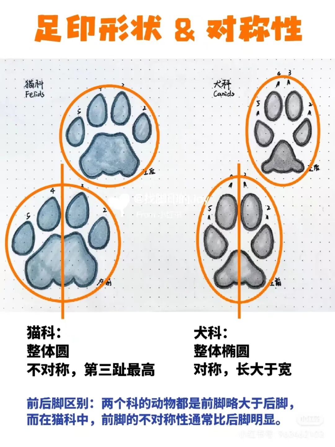 写在前面: 野生动物在与人类相遇时,常常出于本能选择躲避,但是它们悄悄“作案”的动作,往往在大地上留下痕迹。一些痕迹爱好者会从中进行解读与推理,窥见隐藏其后的生命细节。 毕业于芝加哥艺术学院“艺术与环境”方向的王穆清老师正是一位专业的痕迹观察者。本期的干货主要包括痕迹辨识在科研和保护中的应用以及痕迹辨识攻略,希望能为一线田野工作者和自然爱好者们拓展新的观察视角。 在人类历史的早期,识别和追踪痕迹是一项重要的生存技能。狩猎采集时代,我们的祖先依靠这项能力生存,追踪猎物、规避野兽,并寻找诸如水源等关键的自然资源。随着现代社会的推进和禁猎法律的实施,这项古老技能的丰富性正在降低,逐渐式微。如今,世界上只有极少数民族和部落熟练掌握痕迹追踪的技能,比如非洲的桑人(布须曼人的一支)、澳大利亚的原住民和阿拉斯加的因纽特人。 在生态保护领域,痕迹辨识依然有独特的价值,它是一种非侵入性的调查方法,没有让动物陷入应激状态的风险,也有着较为广泛的应用,我将第一类应用归纳为“获得生态学信息”,这些信息包括分布、行为、数量、性别、年龄、食性、巢穴、觅食点、栖居点,等等,特别是对于一些行踪隐匿或夜行性的动物,由于难以直接观察到动物本体,通过痕迹往往可以了解它们的更多信息。 例如蒙大拿州一项针对罕见食肉动物(加拿大猞猁和狼獾)的联合调查中,研究人员骑着雪地摩托车搜寻它们的新鲜痕迹,一旦发现,便改为徒步逆向追踪。逆向的方式可以尽可能避免对动物的惊扰。如果顺着新鲜痕迹前进,动物可能察觉到人类接近而改变原本的行为模式。在追踪过程中,研究人员会沿途采集毛发、粪便等样本,用于后续的DNA分析和其他的一系列科研工作。[1] 蒙大拿州的联合调查报告封面/图源[1] 第二类应用是“找到动物本体”。几年前我参加美境自然在广西滨海的调查,目标是收集幼鲎的本底数据,由于幼鲎习惯埋在滩涂中移动,所以我们通过寻找它们留下的“鲎道”来定位,鲎道通常呈“川”字形,即三条并排的痕迹,两侧的痕迹是身体拖行划出来的,中间的则是剑尾的痕迹,通过识别这样的痕迹,我们就能找到幼鲎,并对它们头胸甲的宽度等本体数据进行测量和记录。而另一个引人瞩目的案例是,2019年,在加拉帕戈斯群岛的费尔南迪纳岛上,科研人员通过辨认足迹和粪便,成功重新发现了一种已被认为灭绝一百多年的物种——费尔南迪纳巨龟。 幼鲎的爬行痕迹照 除了上述常见的两类,痕迹追踪还有一些创新性的应用:在加拿大班夫国家公园,研究人员希望评估生态廊道的有效性,选择了三种啮齿动物——高度依赖草原生境的草原田鼠(Microtus pennsylvanicus)、高度依赖森林生境的赤背松田鼠(Myodes gapperi)和适应多种生境的北美鹿鼠(Peromyscus maniculatus)。研究人员想了解它们是否会偏好不同类型的生态廊道。 由于啮齿动物身型比较小,难以通过红外相机准确识别,所以研究人员在四种类型的生态廊道上面设置了一些铺煤灰的小管道,用于采集脚印。作为对照,管道也被放置在廊道入口前(多位于道路旁的草地)和周围的林地中。通过辨认采集到的脚印,他们发现北美鹿鼠对廊道类型没有特殊偏好,而另外两种田鼠只使用建设在公路上方的天桥式廊道(overpasses),这一结果说明,如果只做不区分物种的一般性调查,可能会忽略那些生境专一性强的小型哺乳动物,从而导致保护措施不够精准。[2] microtus属的田鼠足迹 尽管痕迹追踪作为一种调查方法已取得可喜的成果,但作为一门来源于乡土的生态知识,其识别准确度一直存在参差不齐的情况,追踪学博士Kersey Lawrence研究发现,一些田野工作者以为痕迹辨识很简单,只需要非常简单的培训甚至不需要培训,这其实是一种典型的认知偏差。[3]事实上,在不少研究中,痕迹识别的错误率很高,且很多都未交代观察者的辨识能力。比如,得克萨斯州公园和野生动物部门开展的一项水獭脚印调查中,调查人员与志愿者很难准确将水獭足迹与其他动物(浣熊,河狸,负鼠,水貂等)区分开来,错误率高达63%。[4] 因此,推动系统化、专业化的资料建设与田野培训,对提升数据准确性至关重要。回到前面提到的针对加拿大猞猁和狼獾的联合调查,样本DNA分析的结果显示,研究人员在十年内的痕迹判断准确率有96.3%,最后两年甚至达到97.6%。那些田野工作者大多持有Cyber Tracker的Track and Sign痕迹辨识等级3或以上的证书。 CyberTracker是一个起源于南非的组织,由Louis Liebenburg联合当地的桑人创立。生活在南非的Louis Liebenburg一直都对桑人神秘的追踪技能感到好奇,于是在大学辍学后深入丛林和荒漠,与桑人一同生活、学习追踪技能,并合作成立了这一组织。Cyber Tracker的目标有两个,一是推广痕迹追踪技能,二是建立追踪者能力衡量的标准体系。目前,该组织的痕迹追踪技能考核已覆盖非洲、北美洲、欧洲多国及中国台湾。 Louis Liebenburg(左一)和桑人在开展一场痕迹辨识能力考核 图源:cybertracker.org 我参加的是北美的CyberTracker考核,考核需要基于痕迹的形态特征、动物的行为、物种的分布、栖息地特点等等方面,去进行严谨的综合判断。并且也要去证伪,为什么是这个动物,而不是另外一个动物,就像Cyber Tracker北美分支的创始人Mark Elbroch博士所说,痕迹考核是一种非学院派的科学教育。 笔者获得了C
