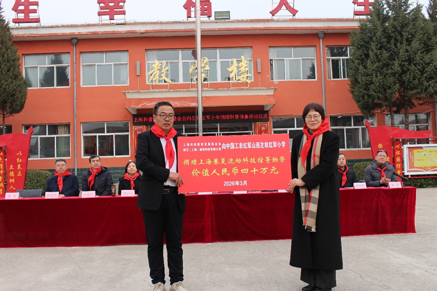 为进一步落实和贯彻中央、国务院办公厅加快革命老区振兴发展的文件精神,依照加快补齐革命老区基础设施和公共服务短板,增强教育科技人才支撑,传承弘扬红色文化的总体要求,加速推动优质科普资源向革命老区和基层地区延伸,上海科普教育发展基金会已先后前往多所红军小学(其中包括甘肃环县习仲勋红军小学,江西井冈山毛泽东红军小学,广西百色邓小平红军小学等)进行实地捐赠,促进科普公共服务均衡发展。此次捐赠由群艾(上海)教育科技有限公司携手共同设立“雷殿生科技文化传播专项基金”资助。