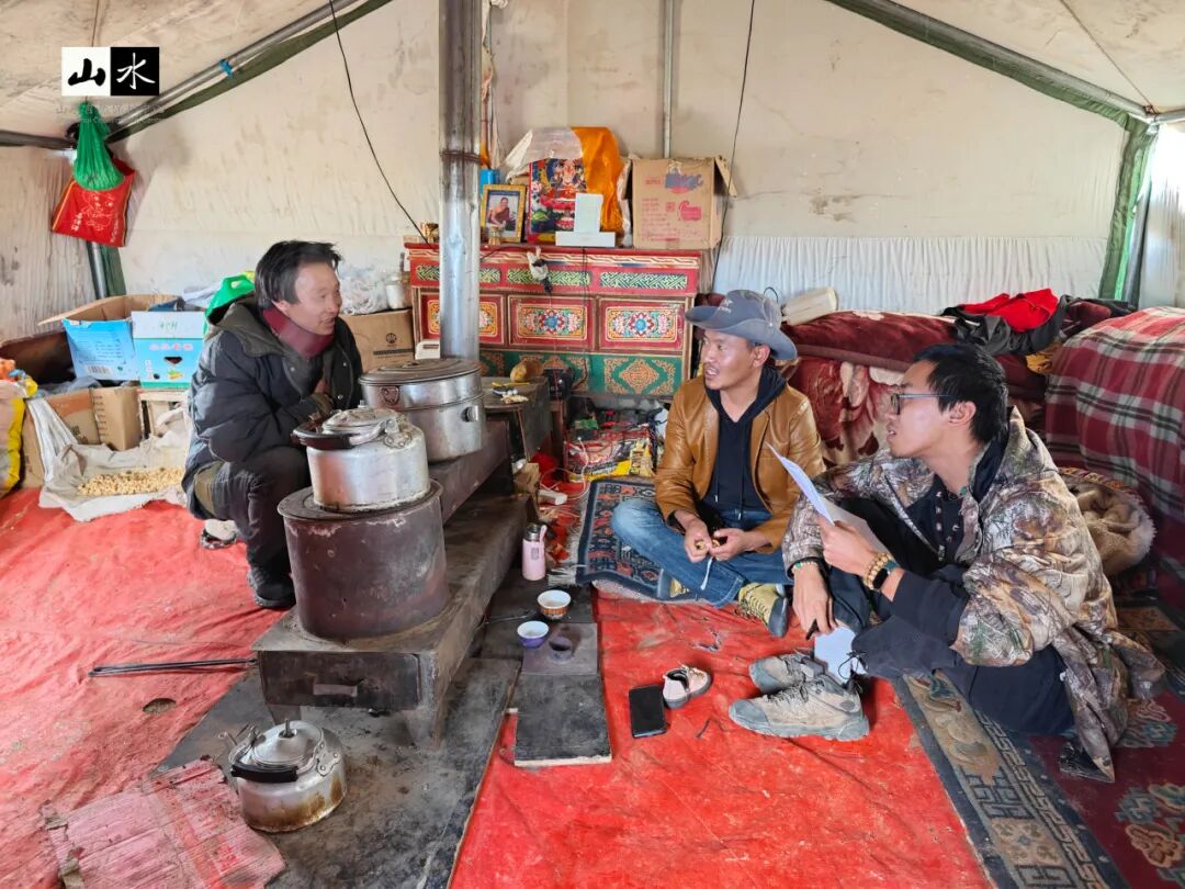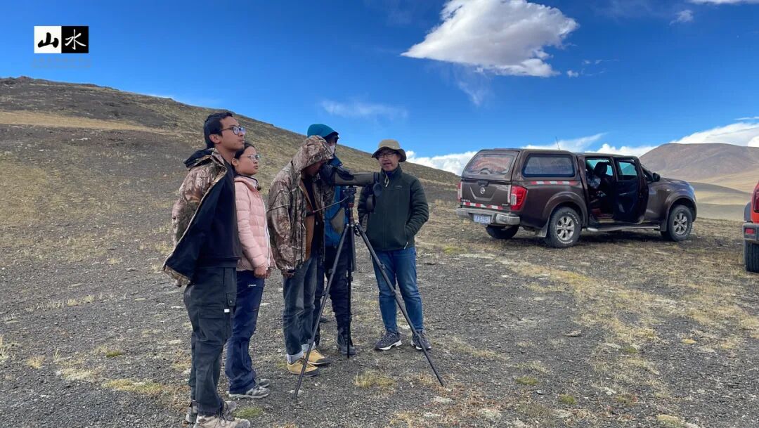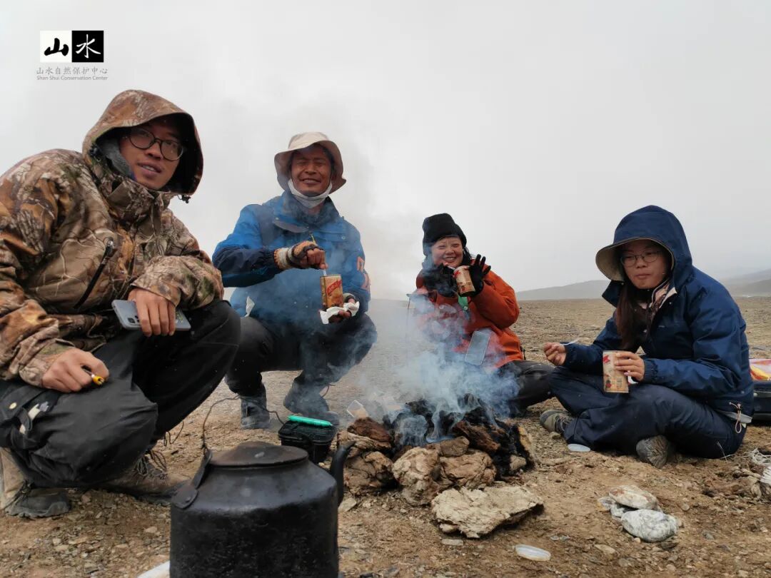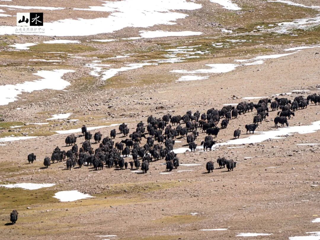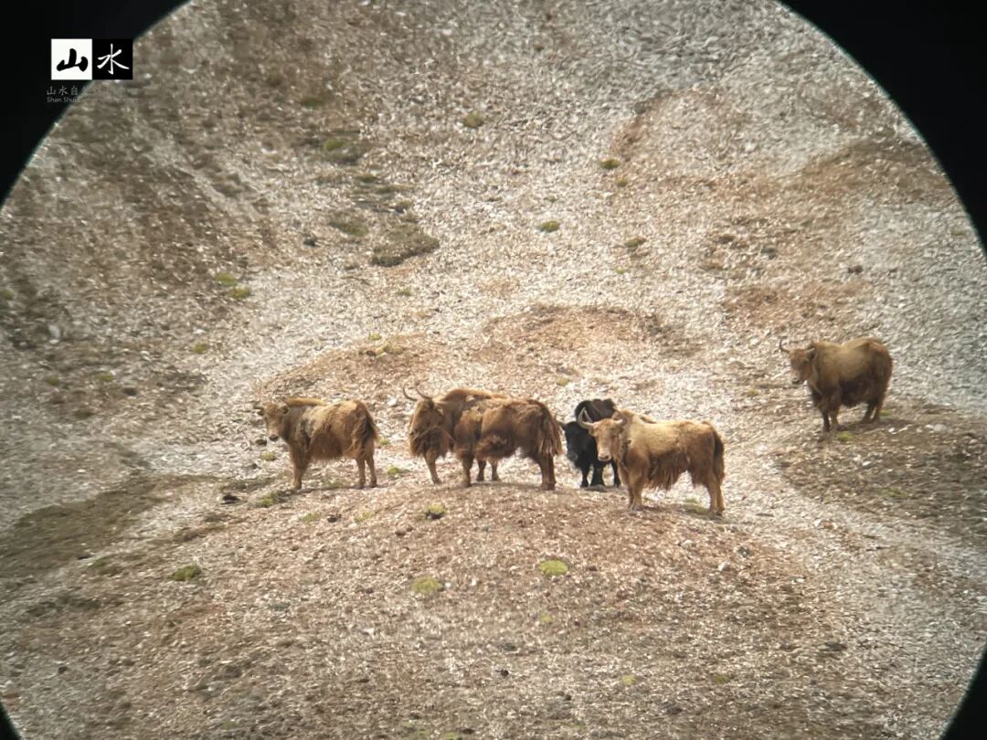 点击上方 写在前面 亲爱的朋友们,虽然时间如水般流逝无痕,但是山水的工作扎扎实实地了留下印迹,春天在北京的公园里认真观察传粉昆虫,夏日在上海闷热的夜晚小心翼翼寻找貉的身影,秋天爬上苍茫的祁连山安装红外相机,冬日在苍山识花观虫,体验傈僳族文化,以及各类不间断的监测与保护行动,都历历在目。 我们想和你分享山水在西藏调查神兽野牦牛的故事,祝大家新的一年拥有野牦牛生存的韧性和一往无前的勇气。 十月,雅鲁藏布大峡谷进入了秋雨季,在藏东南墨脱绵延的雨天,我加倍想念藏北高原的广阔与干燥,想念那没有树的宽广草原,想念独属荒野的奇珍异兽。 藏北高原幅员辽阔,行政上隶属于西藏自治区那曲市与阿里地区,东与西藏昌都市相邻,西与印度、尼泊尔等国接壤,总面积达到59.70万平方千米,被称为“世界屋脊的屋脊”的羌塘国家级自然保护区就在这里,完整的、独特的高寒生态系统及多种大型有蹄类动物是这里主要的保护对象。 受阿里地区林业和草原局委托,自2023年起山水开始在阿里地区开展野牦牛(包括金丝野牦牛)种群及生存现状调查,调查内容包括羌塘保护区和冈底斯山南部的种群数量、分布及栖息地状况,并评估潜在威胁因素。随着项目启动,我们也开启了自山水2021年在那曲开展雪豹为主的调查后,与藏北高原又一神兽的邂逅之旅。 01 与神兽初遇 野牦牛为青藏高原特有珍稀濒危物种,中国国家一级保护动物,CITES附录Ⅰ保护物种,IUCN易危 (VU) 物种,栖息于海拔3000-6000米的高山草甸地带。过去的一个世纪,其种群数量不断下降,一度面临灭绝的风险,分布区域也已被压缩到羌塘中北部、阿尔金山、可可西里的保护区内。而金丝野牦牛,直到30多年前才在羌塘高原阿鲁盆地西部海拔5000米以上的地方被发现,数量不足300头,且集中分布在阿里地区日土县中北部和革吉县的杂向前区域。因此,现阶段开展种群及生存威胁调查,对野牦牛生态学研究及保护措施的制定至关重要。 阿里地区改则县记录到的野牦牛 2023年3月,我们一行人从格尔木沿G219再转到G317赶到改则县上,路途遥远却满心欢喜,在改则县林草局办完羌塘保护区准入许可后,就马不停蹄赶往阿里野牦牛分布的最东边察布乡珠玛日村。 3月的藏北高原,平均气温保持在零下,每日清晨珠玛日村在麻雀、棕颈雪雀、大嘴乌鸦的叫唤声中苏醒,戈木错湖的一抹蓝点缀在一片白茫茫中。前一夜在管护站安顿好之后,我们便与管护员着手讨论调查样线。第二天清晨早饭后,我们出发了。 太阳刚让草地有了温度,藏羚羊就成群结队地开始进食,我们驱车仔细观察路两边的动态。走进一条小路后,藏原羚、藏羚羊、藏野驴越来越多,但始终没有见到野牦牛。带路的管护员说,它们一定是躲在了远离村庄和牛羊的山沟里。驱车往山坡上行进,海拔逐渐从4700m攀升至5300m。管护员一声大喊,我们顺着他视线的方向望去,三公里外有一些不易察觉的黑点——野牦牛出现在我们视野里。 剧烈的高反和睡眠不足导致的不适在那一刻被荷尔蒙冲散。我们手忙脚乱架起单筒和长焦相机。取景框里,在高山草甸的河谷中,两头身上还有冰晶的巨大雄性野牦牛正在享受今天的第一缕阳光,一头侧卧着似乎还没完全苏醒,一头已经开始啃食雪粒下的干草。就在这第一天,我们累计记录到野牦牛23头,有10余只野牦牛的大群,也有落单的独牛。 正在通过单筒望远镜观察远处的野牦牛 在第一天看到野牦牛的地方捡拾粪便样品 在2015年,相关学者通过遗传分析认为金丝野牦牛为野牦牛的一个亚种或者重要保护单元。金丝野牦牛,也称金色野牦牛,体长和身高与普通野牦牛无差异,但不同于普通野牦牛通体黑或深褐的毛色,金丝野牦牛体色呈浅金黄色。我们首次遇到金丝野牦牛的集中分布区位于杂向前神山附近。在看到实体之前,其实我们已经与附近的管护员调查了两天,两天里我们偶遇了100头的野牦牛牛群、若干单头公牛、以及小群的母牛或者公牛,唯独苦苦寻不到金丝野牦牛的身影。 调查中记录到的野牦牛脚印 在不抱希望的第三天,我们还是按照既定线路出发,沿着管护员常去的巡护路线,往山顶走去。到山顶后,风大得睁不开眼,根本听不到离我只有五米远的管护员的声音。在朦胧的风沙中,只见对面浅绿的草坡上有黄色物体在移动,它们全身金黄毛发,腹部下方与四肢颜色呈棕褐色,这一群有七只(其中一只是普通的野牦牛),它们聚在一起便能看出色差。在微微移动望远镜的瞬间,忽然我与对面山脊上一只金色神兽对望,它驻足凝视,好像向我们诉说属于它们的神秘故事。 第一次调查记录到的金丝野牦牛与野牦牛混群 站在遥远山脊与我们对视的金丝野牦牛 2023全年我和团队成员三次前往阿里,从阿里的最东边到最西边,追寻野牦牛的足迹,累计调查行程达15000余公里;从野牦牛到金丝野牦牛,累计调查记录到野牦牛实体1200余只、金丝野牦牛实体140余只。因为部分区域难以到达以及野牦牛行踪神秘,使得此次调查的难度大大增加,我们相信这片区域的野牦牛及金丝野牦牛数量远不止于此。 02 住在无人区的无人区 藏北高原,平均海拔4800m以上,在我们的调查和记录里,95%的野牦牛都在海拔5000m以上出现。羌塘自然保护区阿里片区有个管护站叫玛东玛站,这里附近50KM范围内无牧民居住,也没有放牧痕迹,仅有一栋孤零零的管护站建在一片