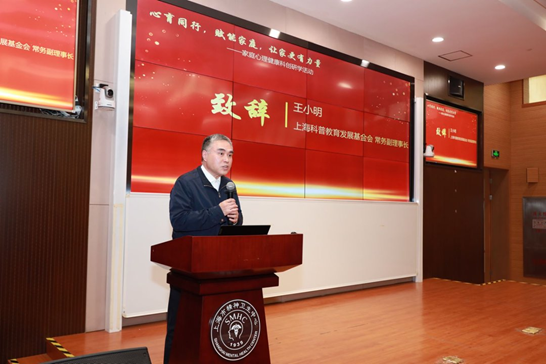 上海科普教育发展基金会常务副理事长王小明,作为本次活动指导单位代表,在致辞中代表基金会宣布活动正式启动。他对上海市精神卫生中心、上海市脑健康科普基地、青少年认知科学研究中心等主办单位,以及上海儒道文化传播有限公司、闵行区颛桥中心小学师生和家长的积极参与表示感谢。王小明表示,“集众人之力,扬科普之光”是基金会始终坚持的宗旨。基金会希望通过链接专业机构、爱心企业与学校家庭资源,将社会力量转化为切实可及的科普服务,回应家庭在心理健康领域的真实需求,为青少年健康成长持续赋能。正是社会各方的信任与支持,推动基金会将孩子、家庭对于心理健康的科普需求,与社会资源深度对接与转化,为青少年健康成长注入新动能。 上海科普教育发展基金会副秘书长兼办公室主任陈红、行政主管胡跃中,上海市精神卫生中心科教部杨卫敏部长、脑健康研究院办公室张青主任参加了本次启动仪式。