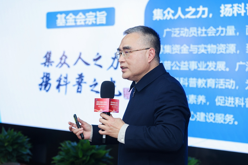 在工作汇报环节,基金会常务副理事长王小明介绍了基金会的发展历程与阶段性成果,并阐述了基金会“集众人之力,扬科普之光”的宗旨。基金会广泛动员社会力量,面向海内外募集资金与实物资源,致力于推动科普公益事业发展,并通过开展和支持各类科普教育活动,服务公众科学文化素养提升和科普能力建设。围绕“筹好钱、用好钱、管好钱”的核心任务,基金会以品牌项目和互联网渠道为抓手拓展募集方式,将资金重点用于科普品牌建设和公益资助,多项项目在促进青少年科学教育和推动科普资源均衡发展方面取得积极成效。