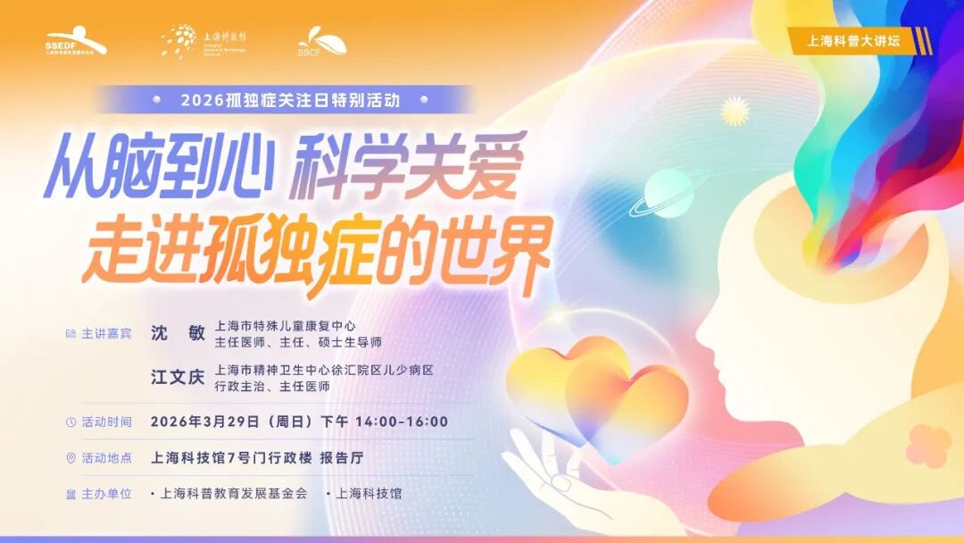 虽然,社会对于“孤独症”的认识已经比较广泛,但依旧还存在着很多的“不知道”和“不理解”。我们将带着这些问题,以一场科学讲座的方式,邀请您与两位专家共同走进孤独症的世界。