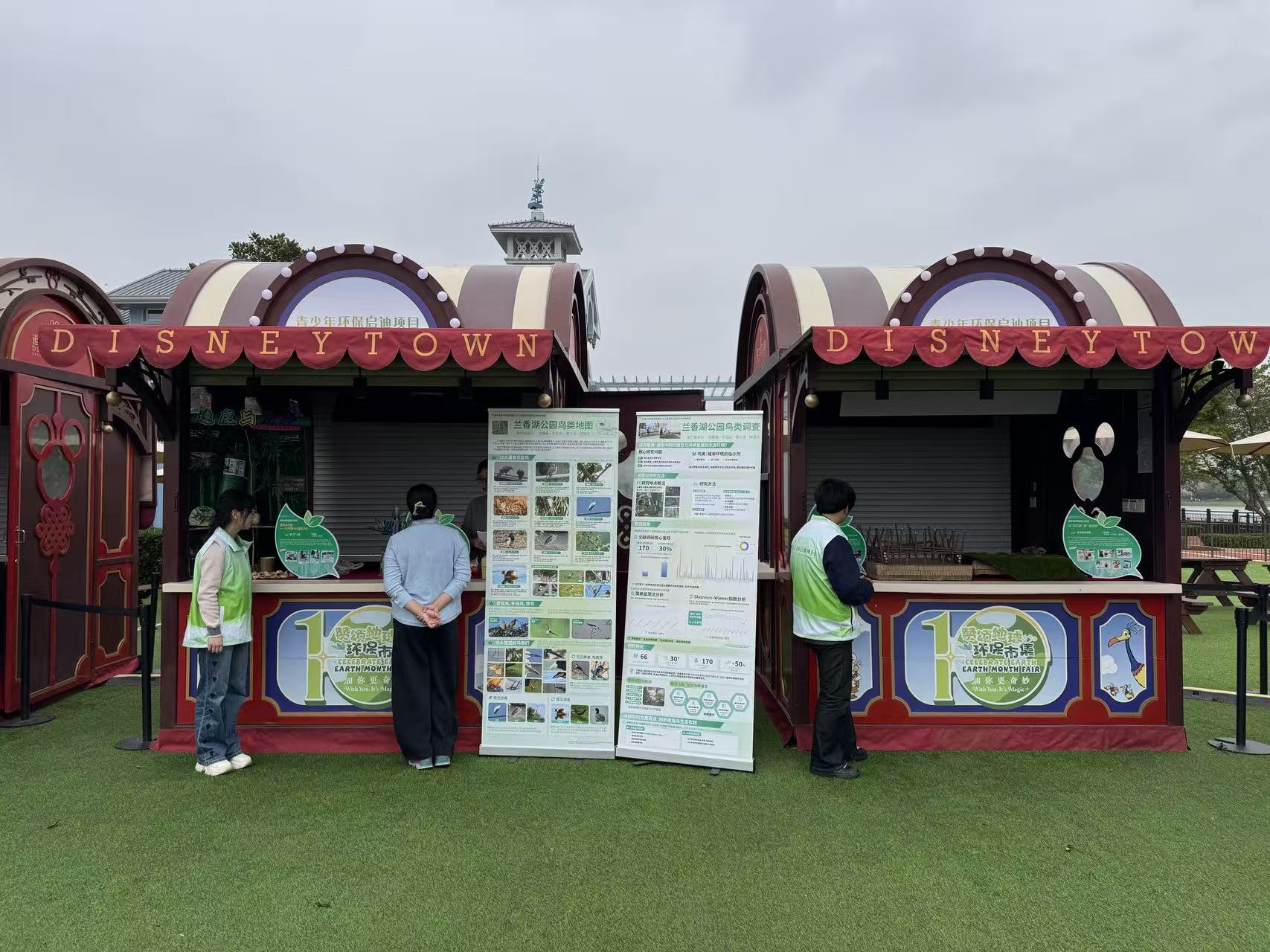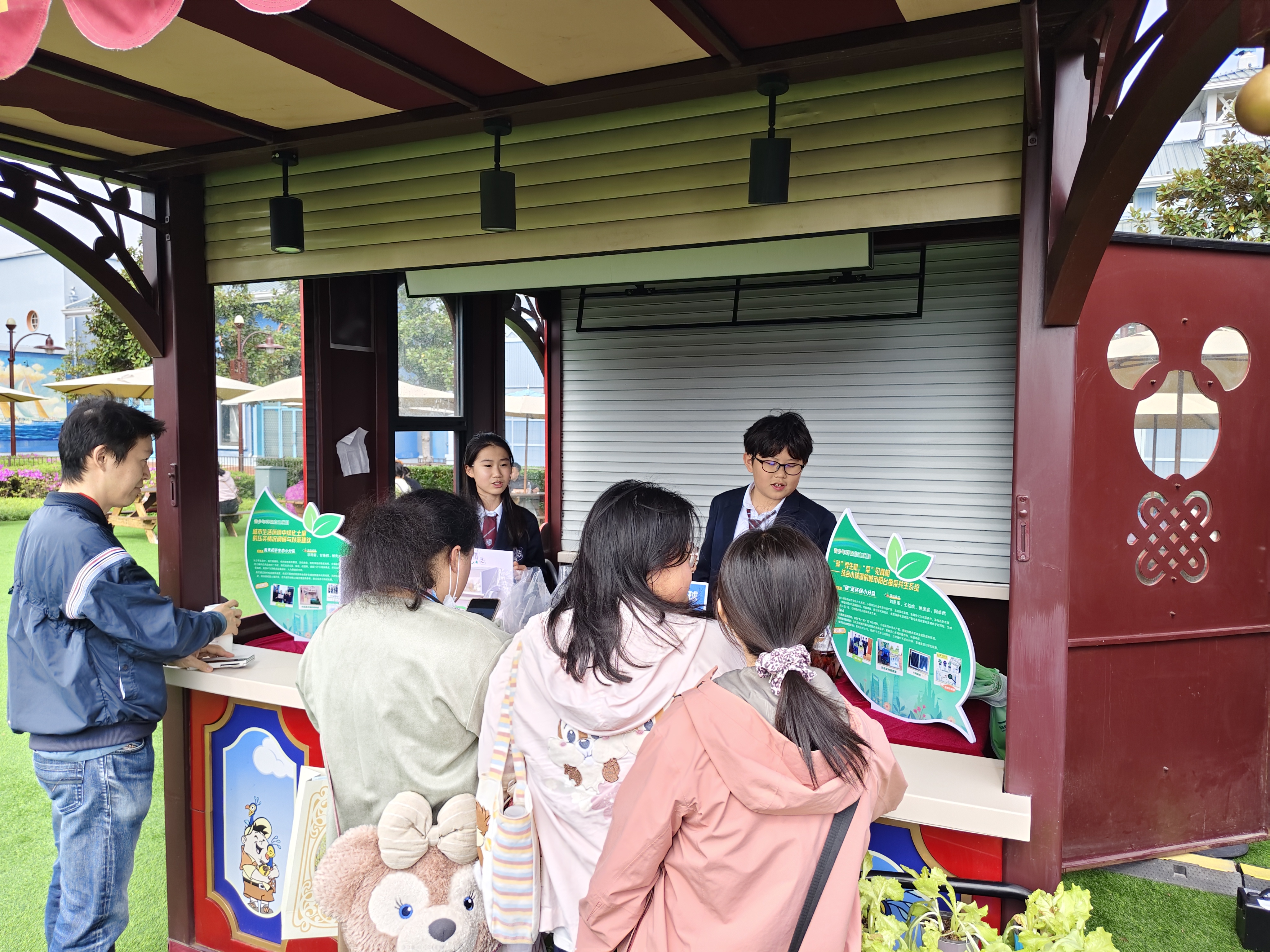 在这里,不仅有自然的故事,更有中国青少年的绿色行动力。由上海科普教育发展基金会与上海迪士尼度假区共同发起的“青少年环保启迪项目”,带着新鲜出炉的“年度十佳项目”闪耀亮相市集,向公众展示了新生代的环保大智慧! “青少年环保启迪项目”旨在鼓励初中生从观察生活、亲近自然出发,创作源于身边的环保创意作品。2025年度项目聚焦气候变化、绿色生活、生态友好主题,共收到135项申报,较首届增长32.4%!全市共有73所初中学校参与,并首次吸引了外省(广西)学子跨地域申报。 4月17日至22日,迪士尼小镇湖畔草坪化身绿色的海洋。在 “ 赞颂地球环保市集 ”上,来自上海科普教育发展基金会、上海迪士尼度假区、社会组织、国家地理及“青少年环保启迪项目”十佳项目团队的 30 余个展位,让游客近距离感受环保的魅力。 最引人瞩目的,莫过于来到现场进行展示与互动的青少年环保启迪项目年度十佳项目团队!这些涵盖科技创意、艺术创作、探究成果的硬核作品,让现场游客直呼“现在的中学生太厉害了”!
